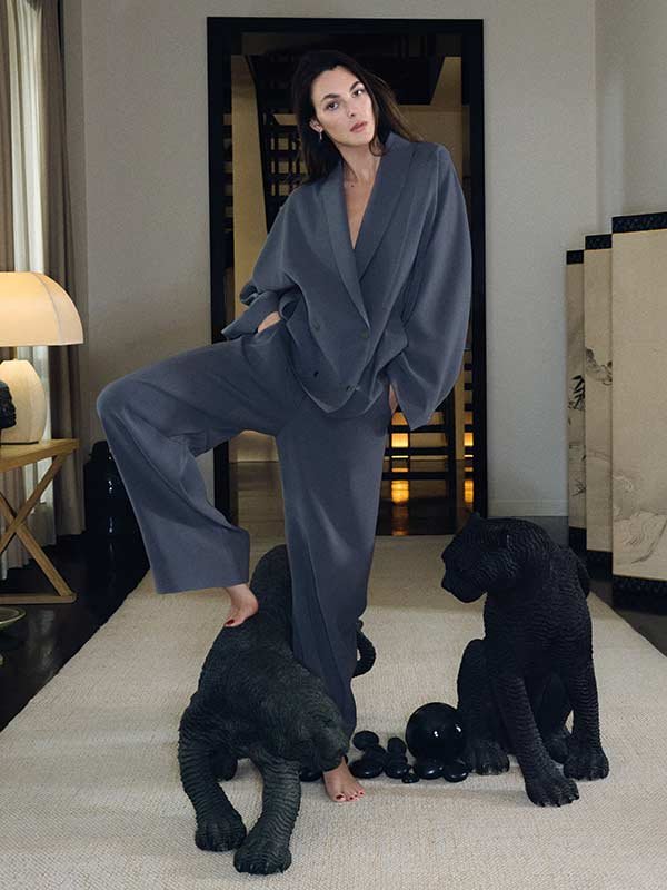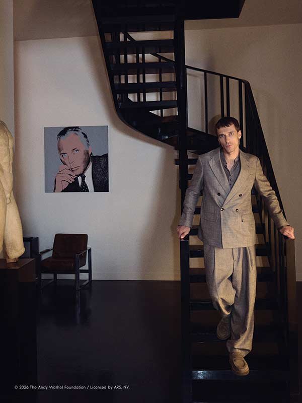 Der Fotograf Oliver Hadlee Pearch inszenierte die Topmodels Vittoria Ceretti und Clément Chabernaud in den verschiedenen Räumen der Villa, machte aber auch vom großzügigen Garten Gebrauch. So stehen die beiden zwar im Mittelpunkt, sind dabei jedoch stets von Objekten, Designstücken, Skulpturen und Kunstwerken aus der Sammlung des Maestros umgeben – darunter solche von großen Namen wie Andy Warhol, Francesco Clemente und Antonio Lopez. Neben den ProtagonistInnen sind Aboubakar Conte und Zhaoyi Fan ebenfalls Teil der Kampagne, während Greta Hofer die Giorgio-Armani-Eyewear-Linie präsentiert.
